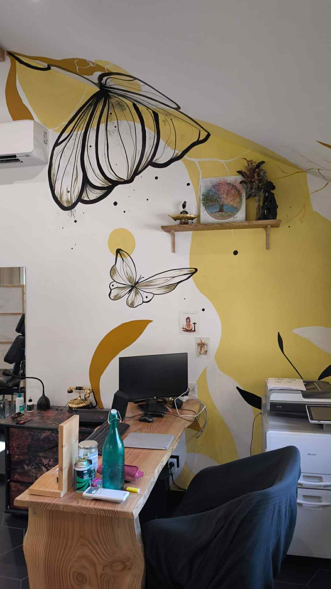 Le tatouage est mon art principal, mais il se prolonge aussi sur toile, sur vos murs, ou dans les veines d’un meuble ancien.